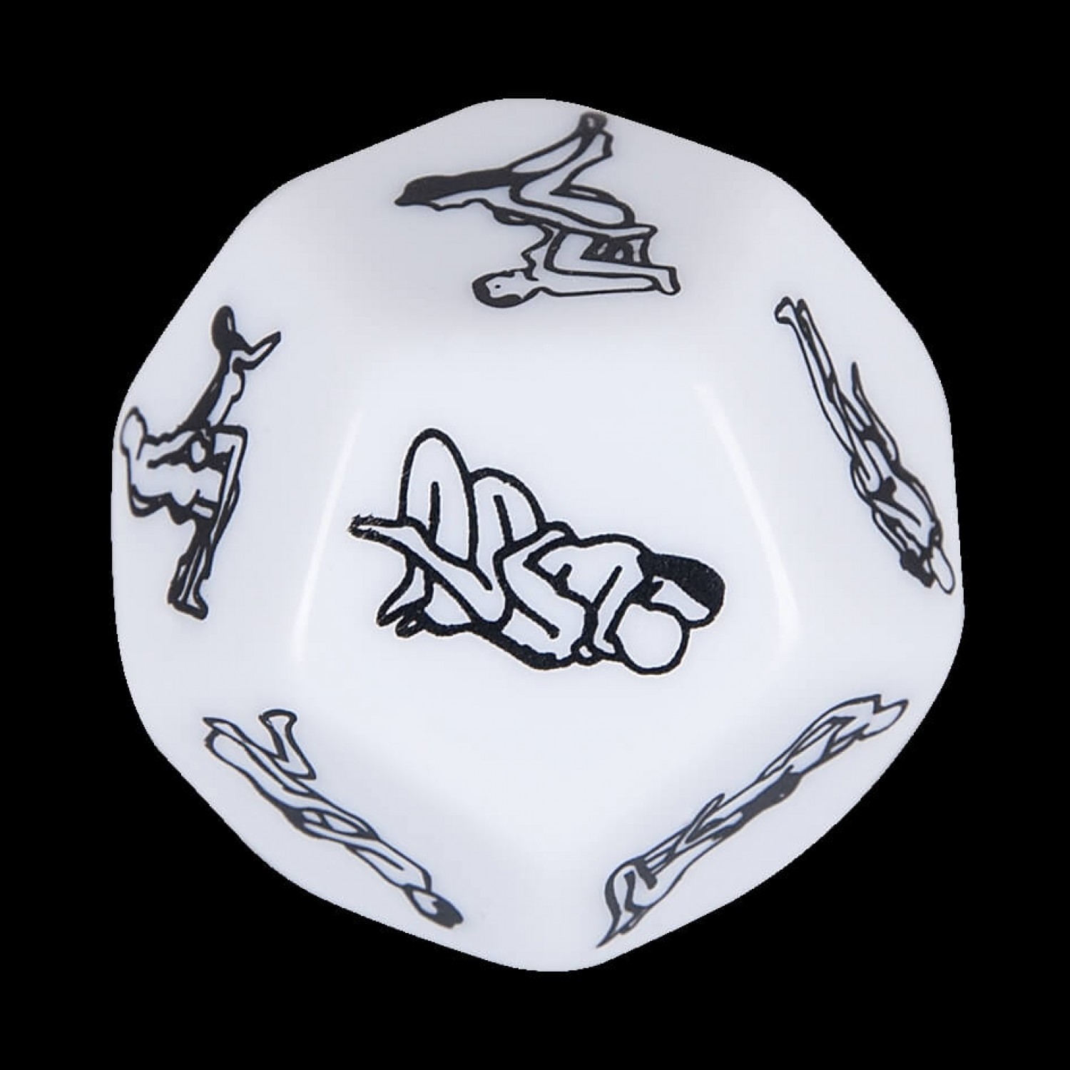 Játszatok egy kicsit és színesítsétek a szexet, ennek a különleges 12 oldalú kockának a segítségével, melynek minden oldalán a káma-szutra ihlette pózok vannak ábrázolva. Döntsön a kocka helyettetek. A kocka mérete 3 x 3 x 3cm. Fehér alapon, fekete rajzolt ábrákkal.