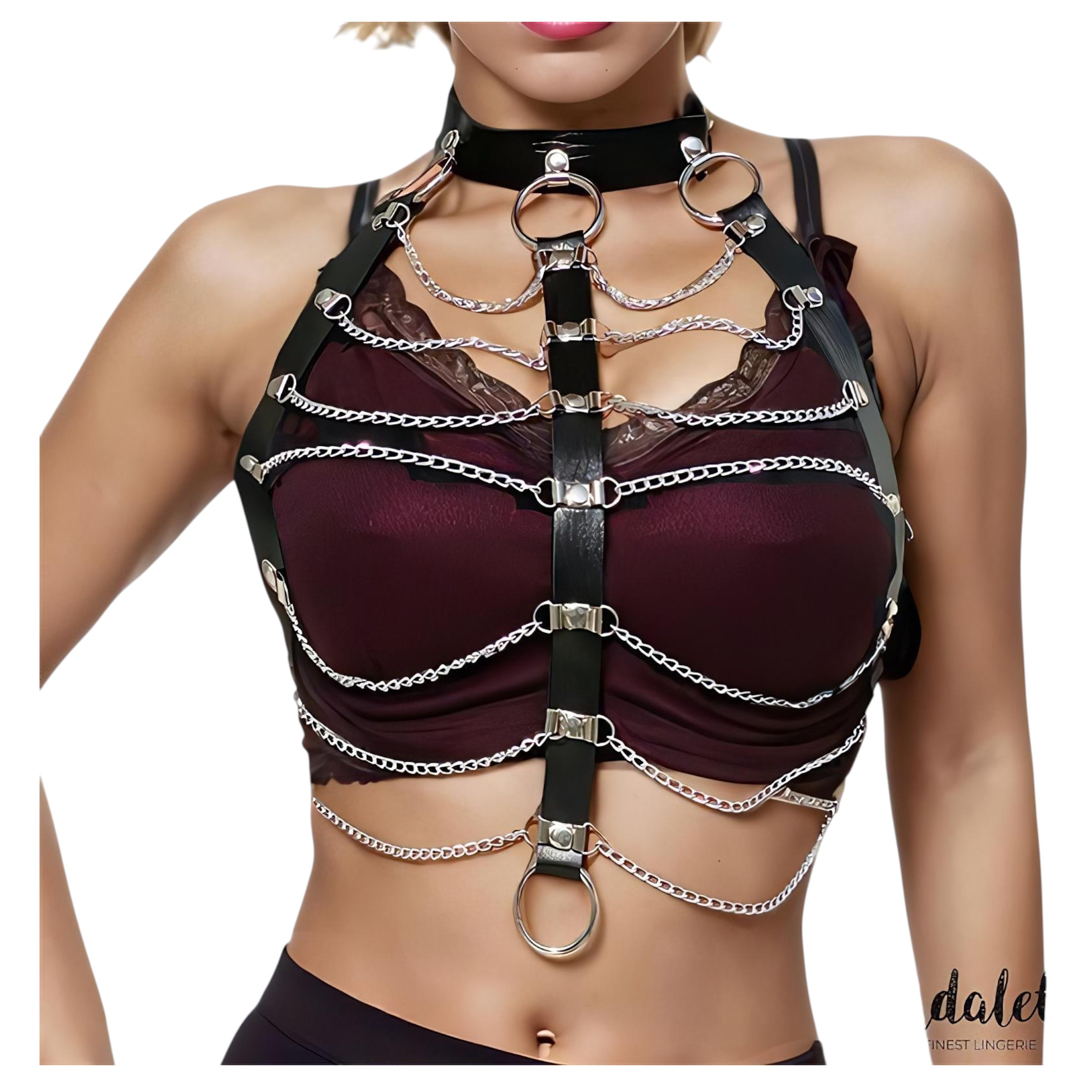 Adalet Hilda - vegán bőr láncos hám (fekete)