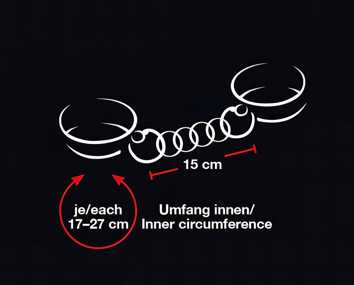 - A bilincsek mérete fém csattal állítható: 17-27cm között