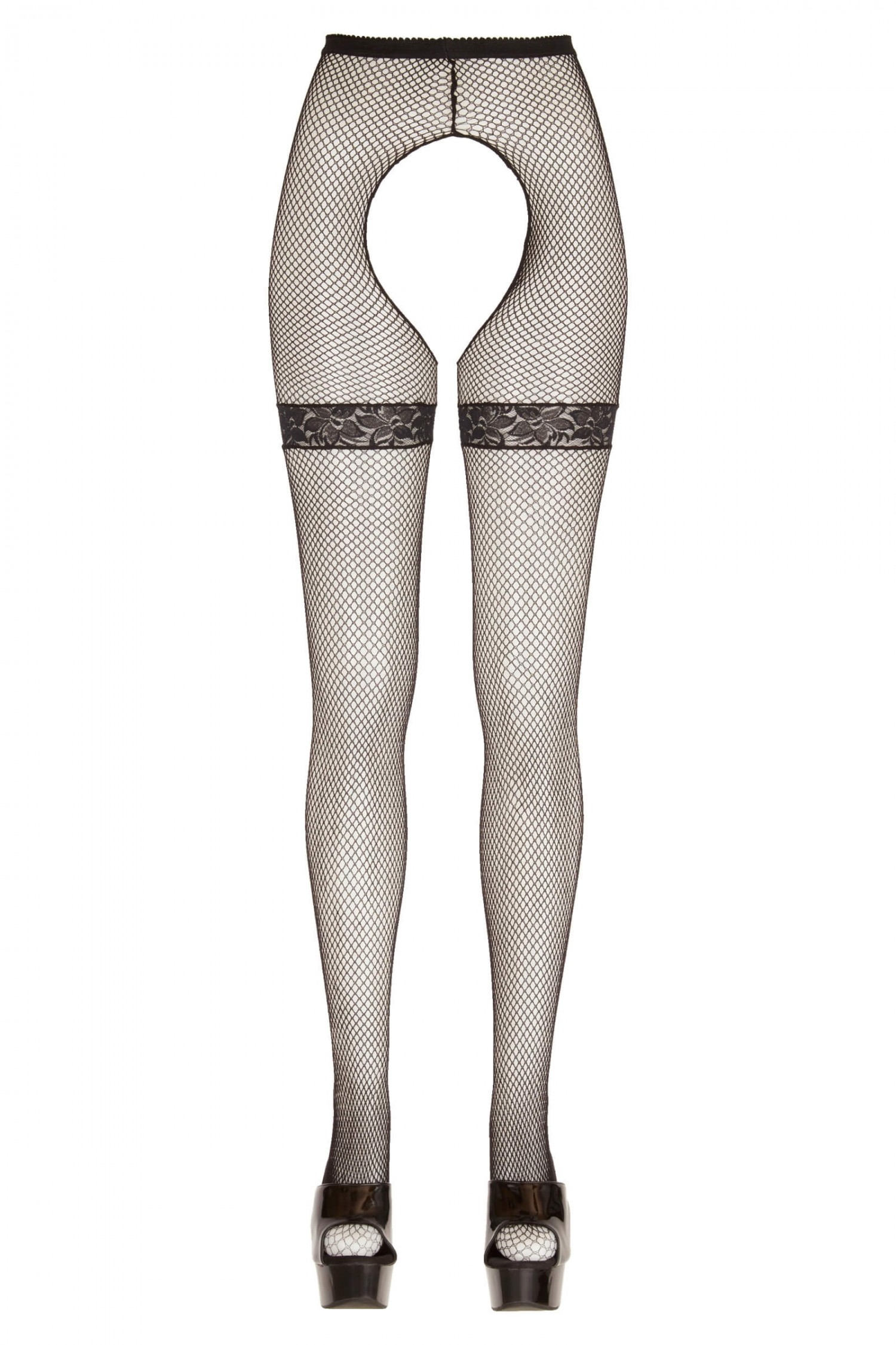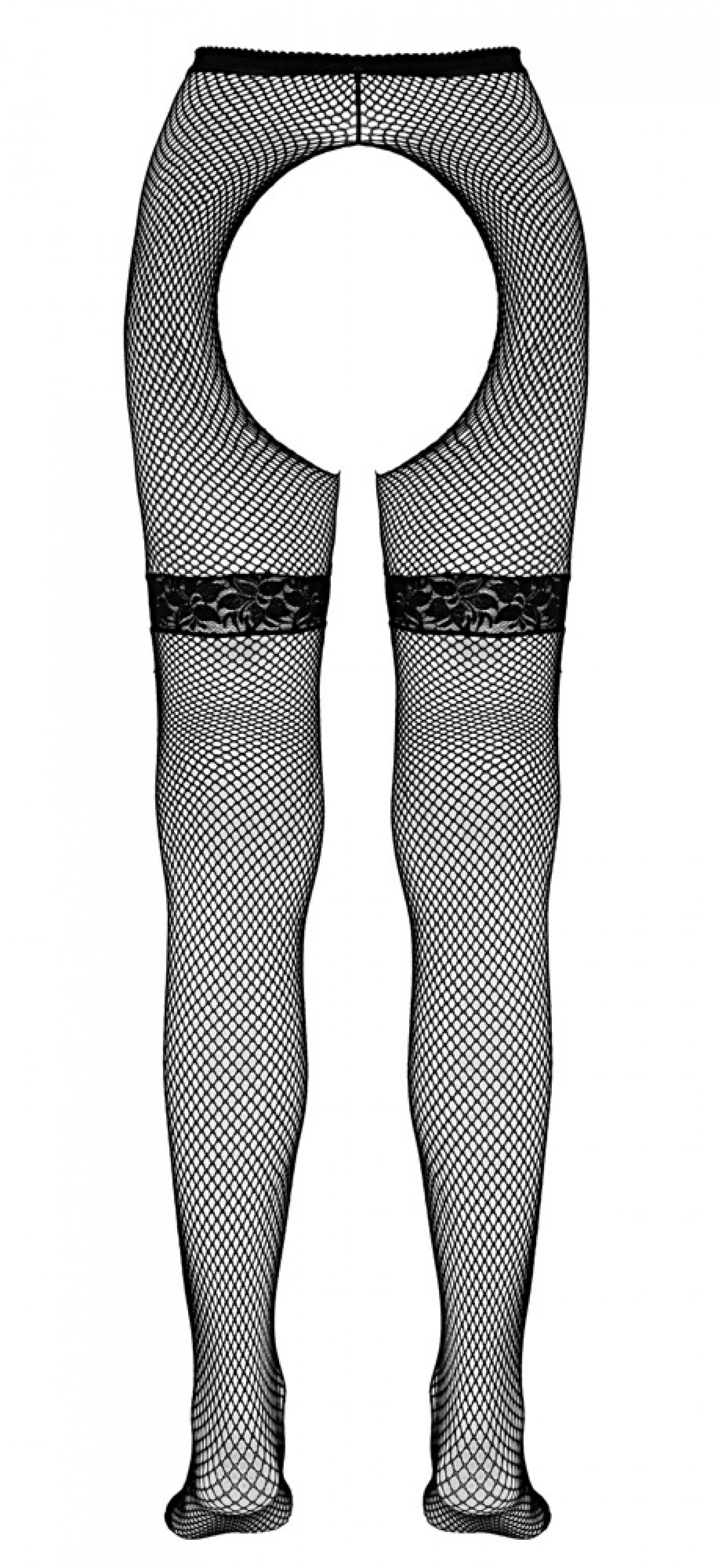 A csomag tartalma:1 darab hálós szuszpenziós harisnya csipkés harisnyatartókkal.