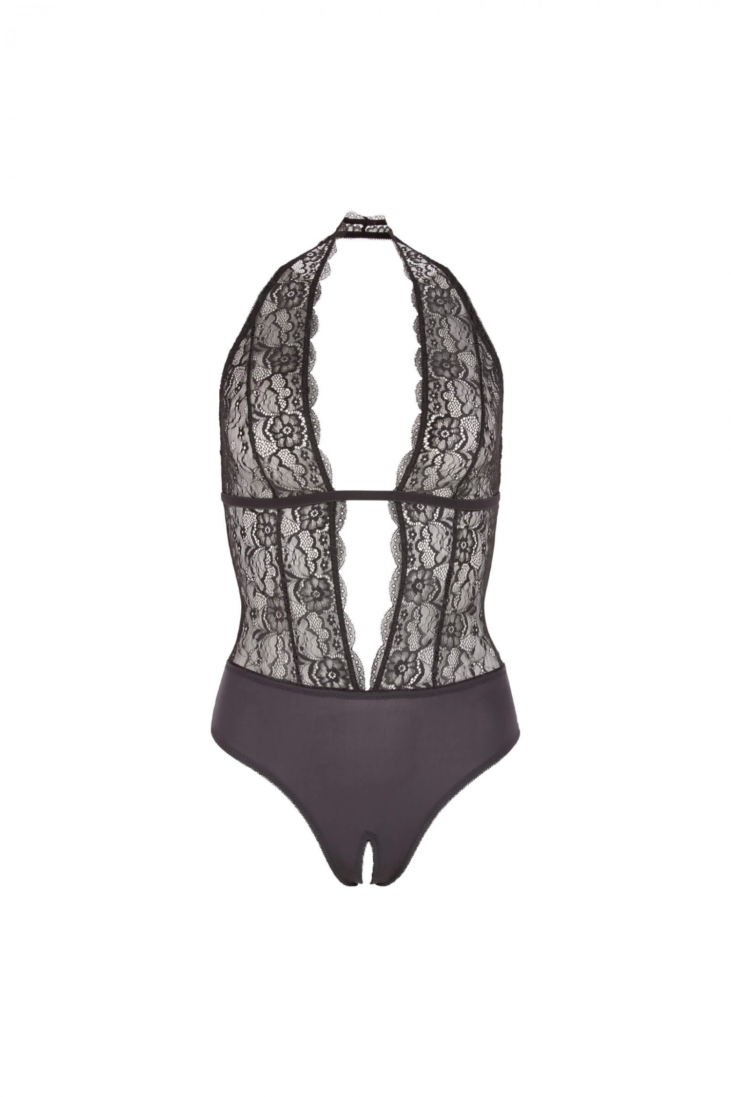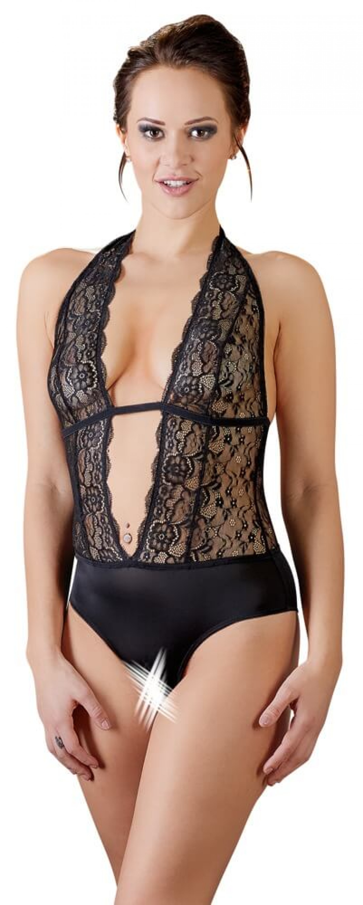 Cottelli - Csipkés, nyakpántos body (fekete)