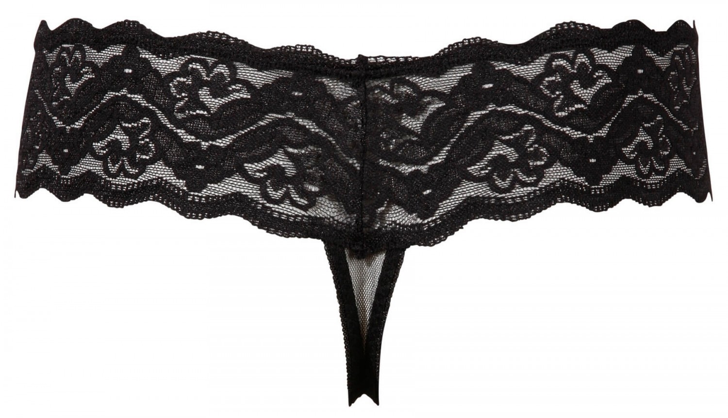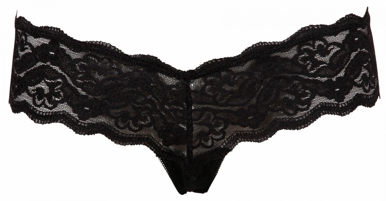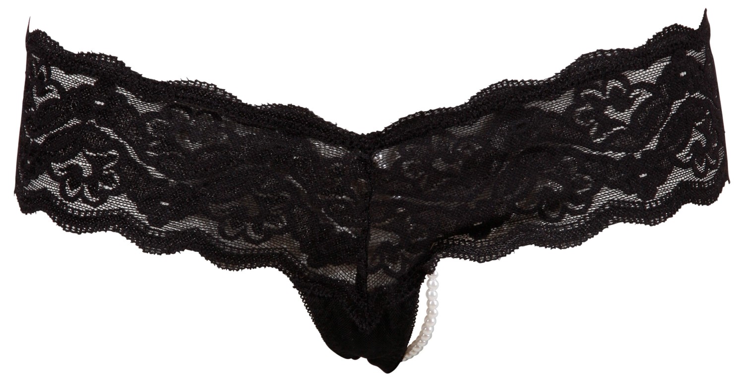 Dekoratív, finom kidolgozású, puha csipkéből készült tanga, széles derékpánttal, lent erős neccből. Középen bevarrt, fehér műanyag gyöngyökből fűzött gyöngysorral, melyek minden egyes lépésnél érzékien masszírozzák a szeméremrészt.