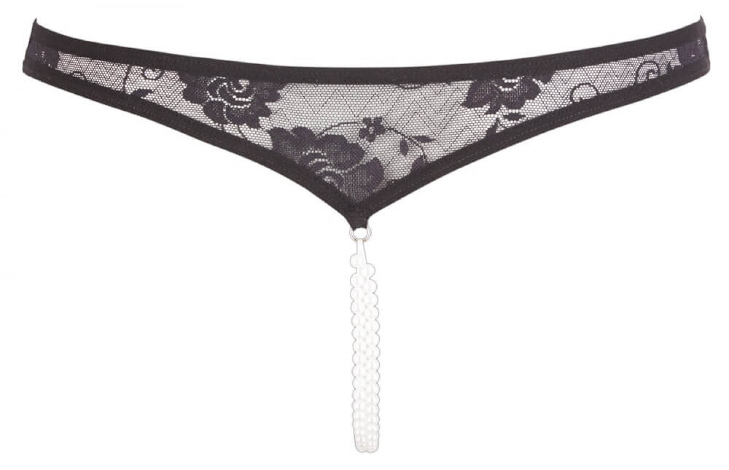 1 db fekete csipke tanag gyöngyökkel, nyitott kialakítással.