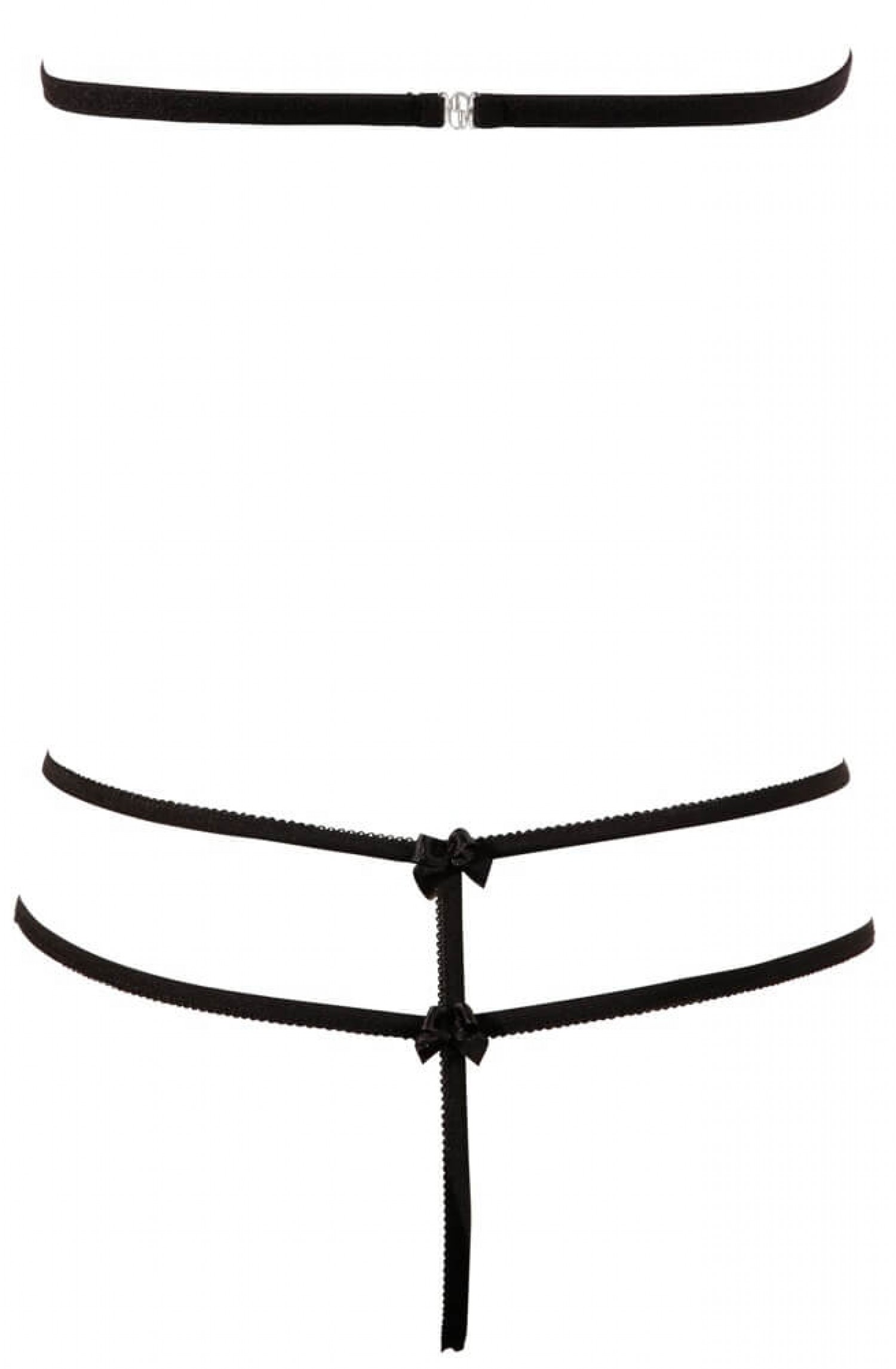 Mutatós és rendkívül szexi szett, ami biztos sikert ígér! Puha, virágmintás csipkéből készült lenyitható, nyakpántos melltartó és a szeméremnél nyitott, duplapántos tanga. Fekete színben.