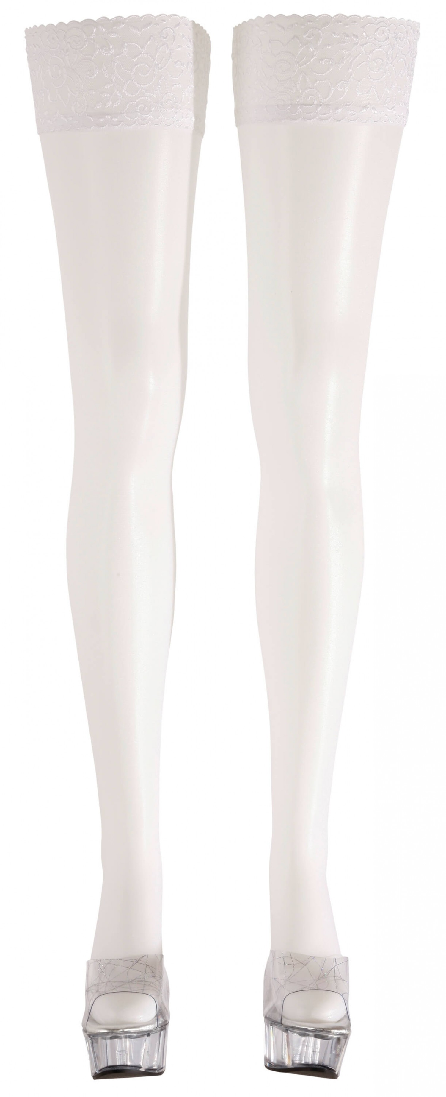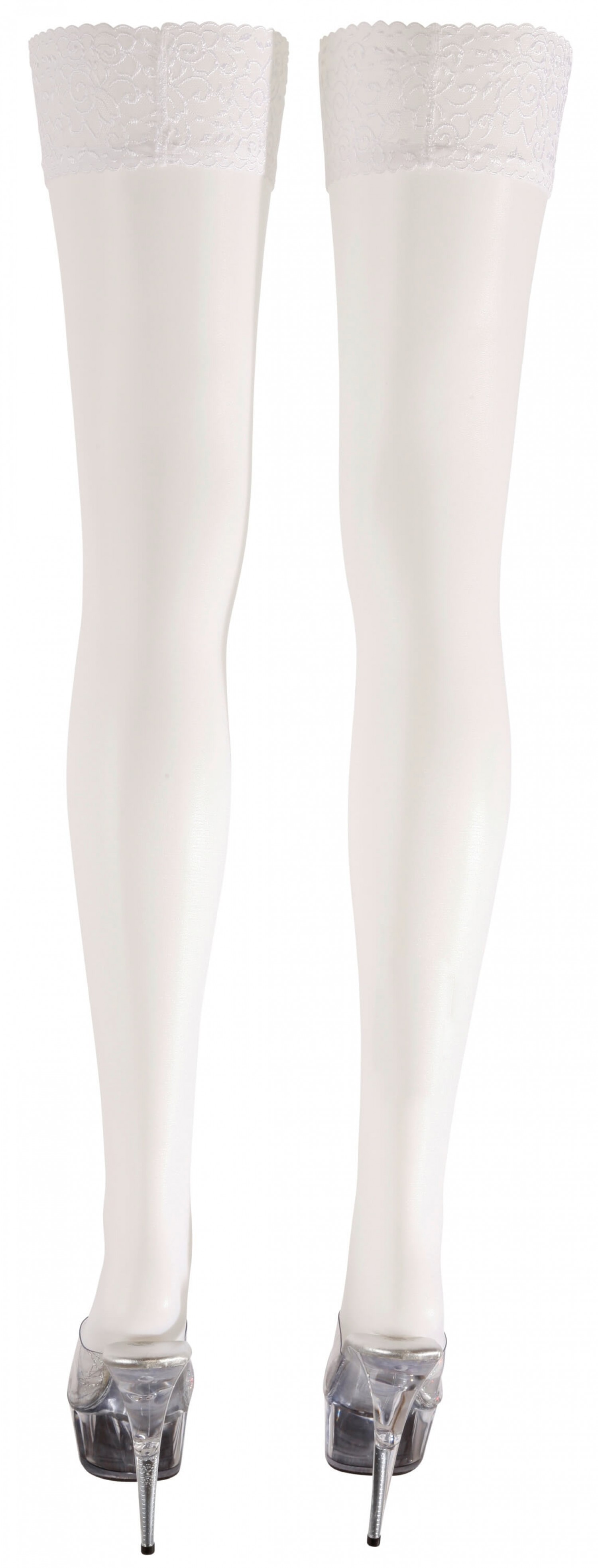 Női álom fehérben. Nem csak esküvői öltözékekhez, hanem sok erotikus fehérneműhöz bájosan viselhető. A finom csipkeszegély kiegészíti ezt a csodálatosan szép harisnyatartó-harisnya öltözéket. Csillogó rugalmas szatén anyagból. Színe: fehér. 90% poliamid, 10% elasztán.