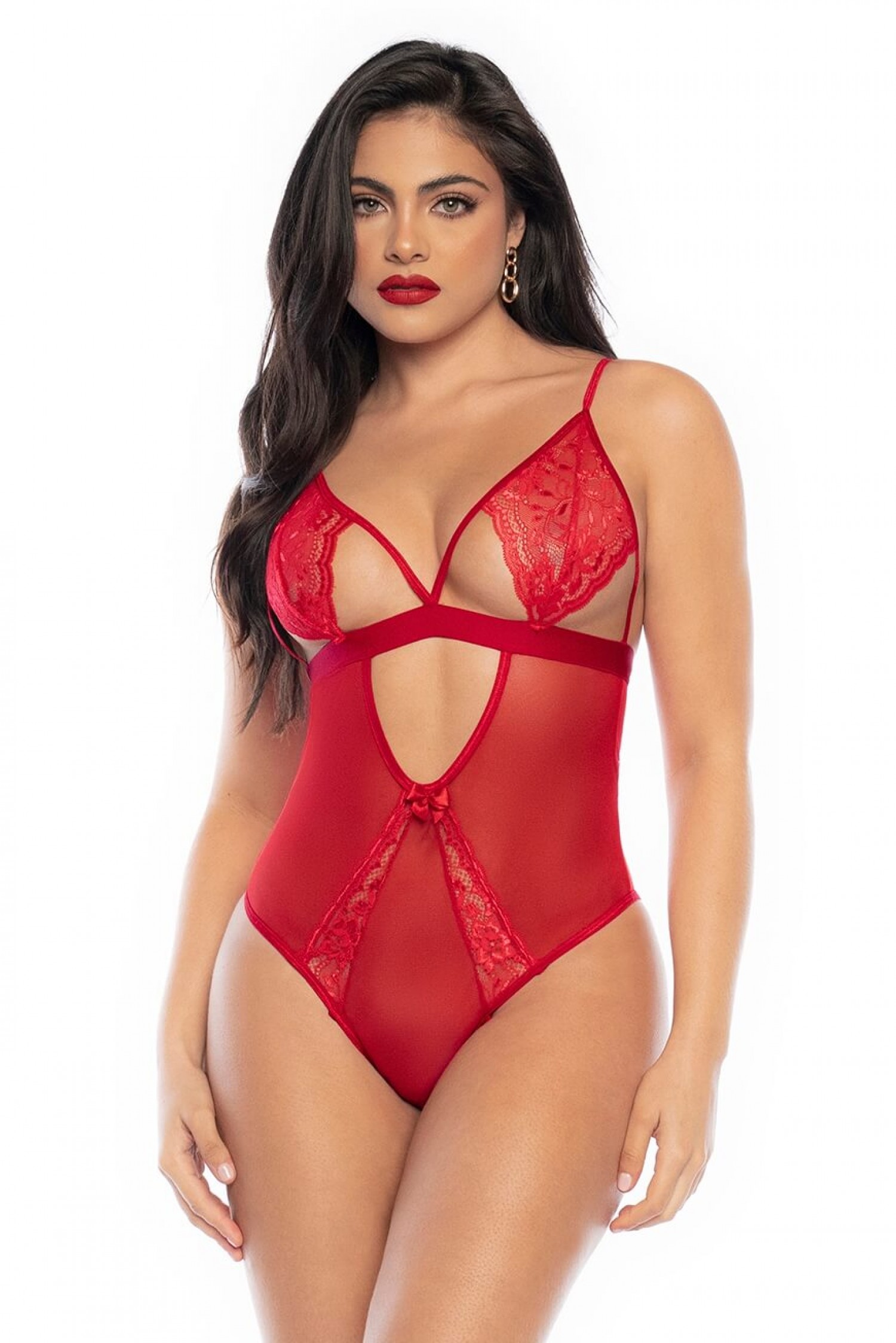 Mapalé - csipkés body harisnyatartóval (piros)