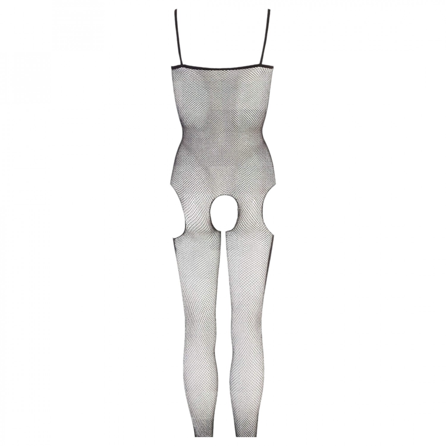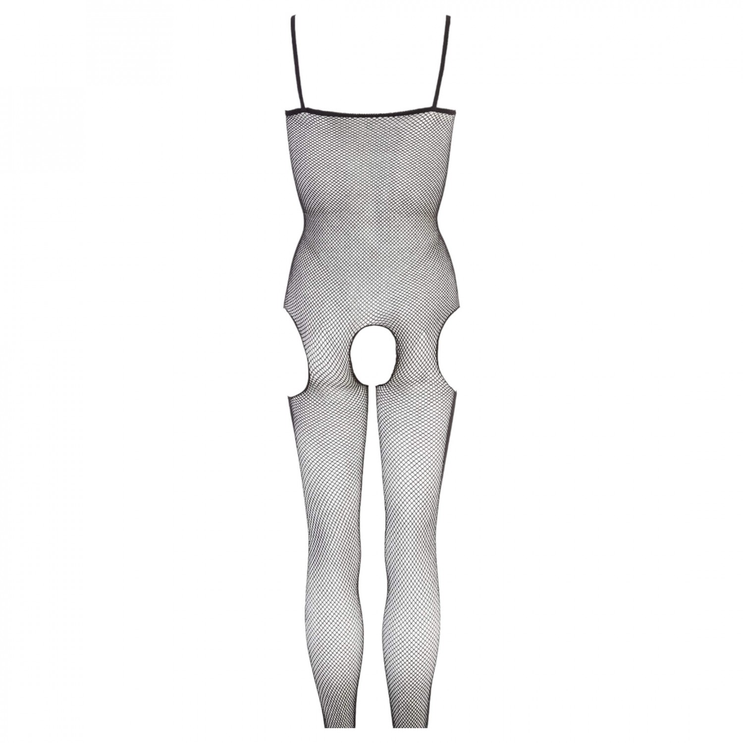 Kiváló minőségű, kellemes tapintású, puha, apró szemű, rugalmas, fekete neccből készült overall, egyenes dekoltázzsal, vékony spagettipántokkal. Különlegessége, hogy két oldalán a csípőnél és a szeméremnél végig nyitott, így aktus közben is viselhető.