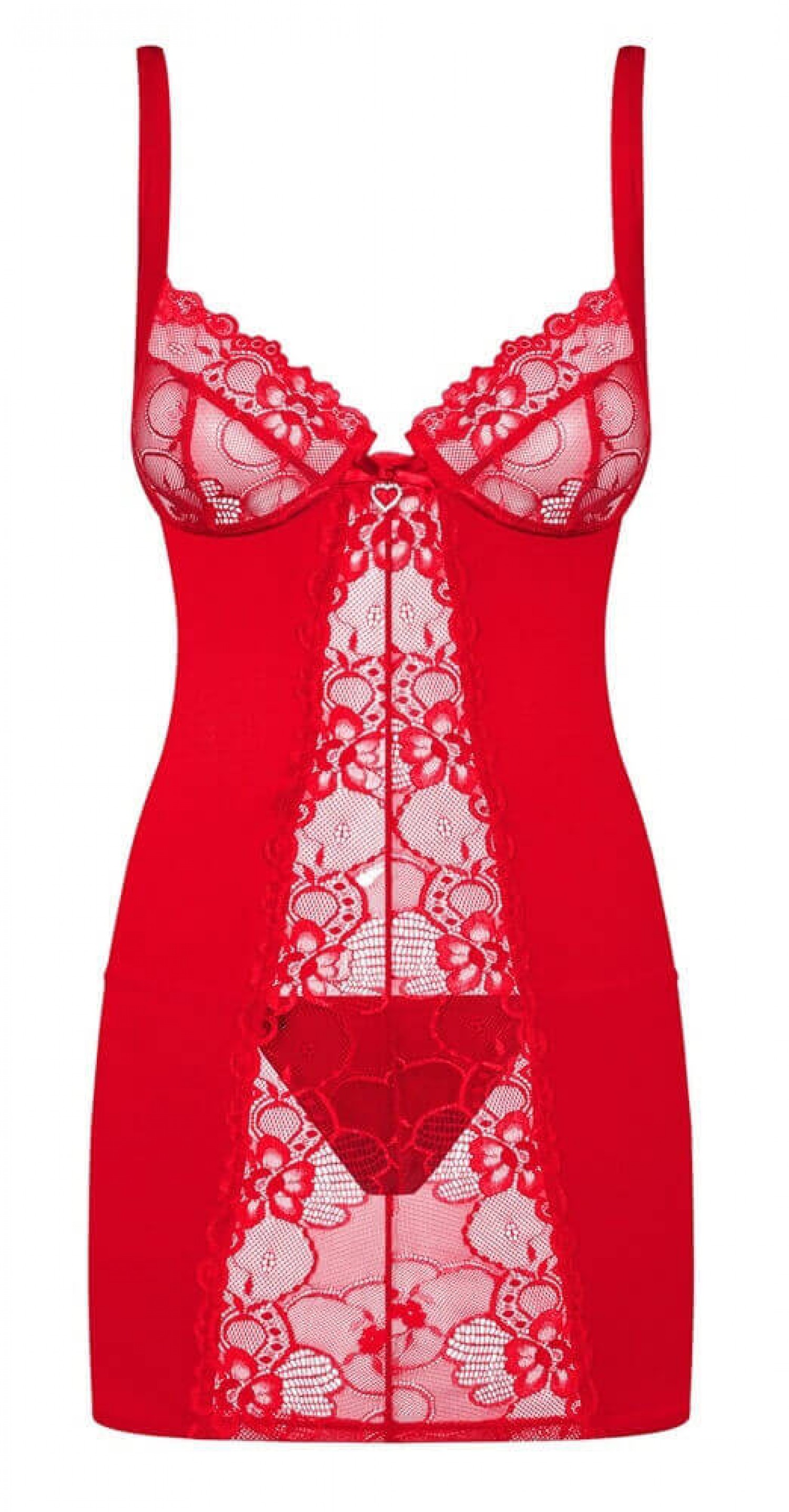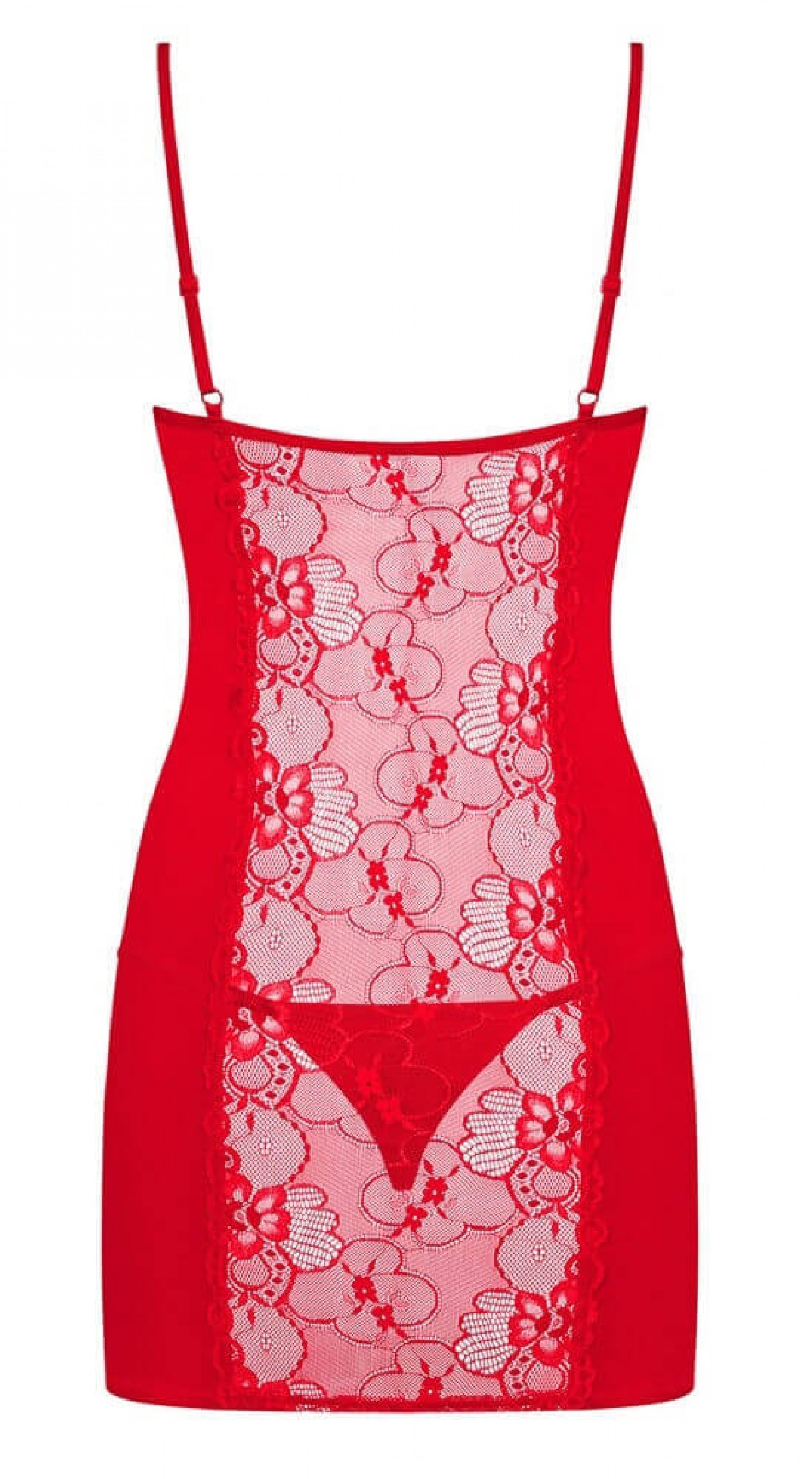 Rugalmas anyagból készül, áttetsző, virágmintás csipke berakásokkal.
