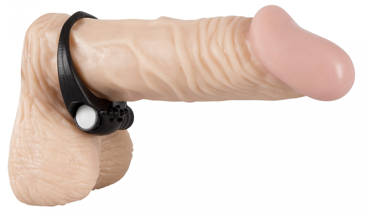 Bőrbarát anyagból készült péniszgyűrű, kis gömböcskékkel borított csikóizgató résszel, benne minivibrátorral.