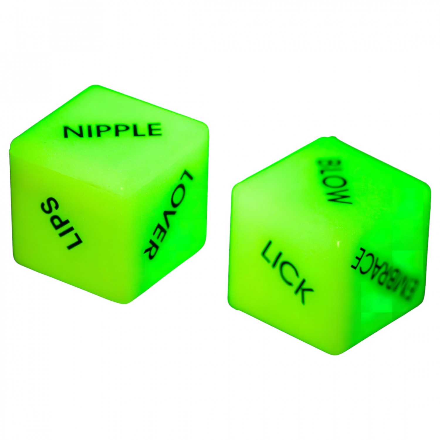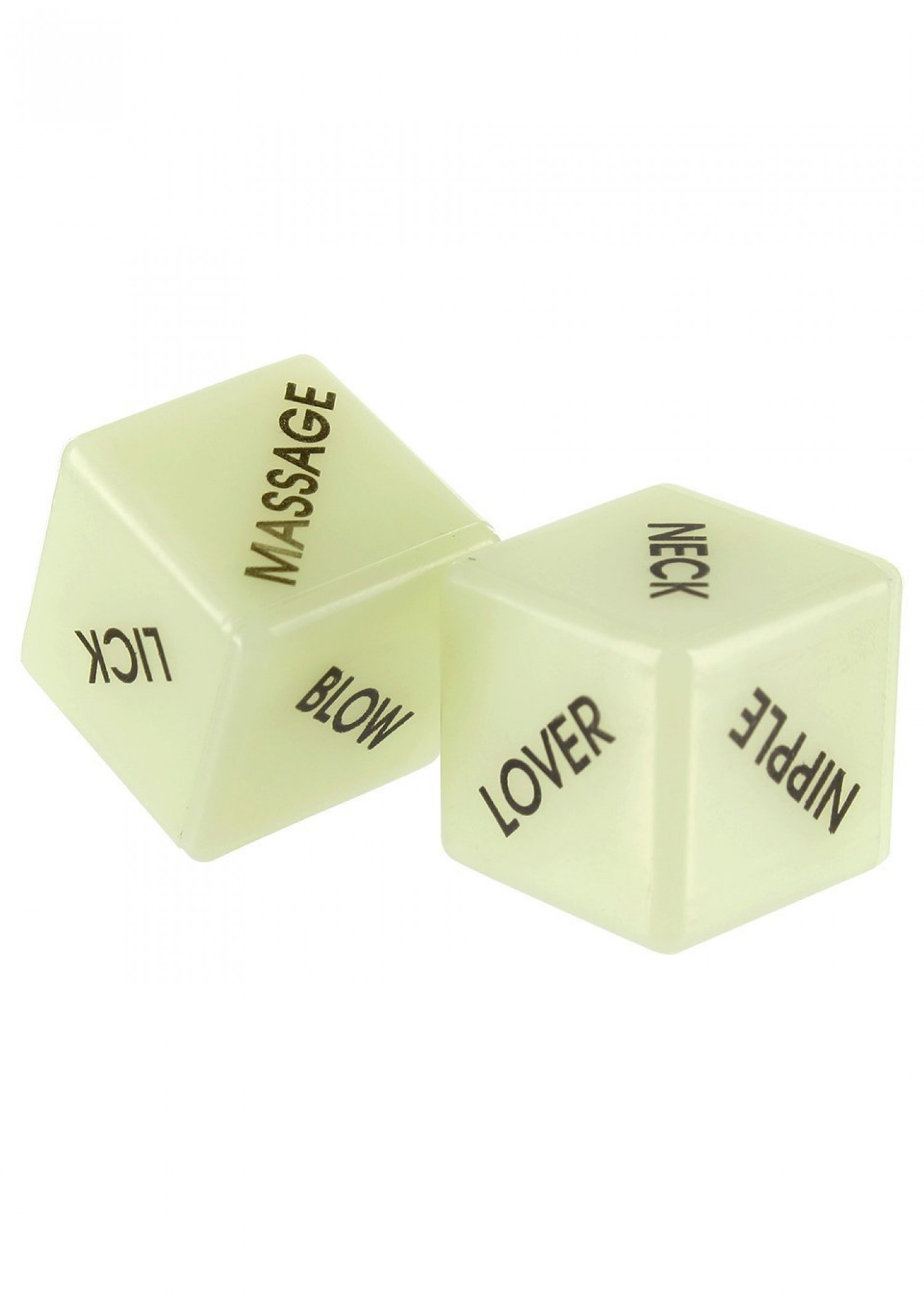 2db játékos kocka, az egyik megmutatja, hogy melyik testrésszel, a másik pedig, hogy mit tegyél vele. A kockák világítanak a sötétben, angol nyelvű feliratokkal készültek.