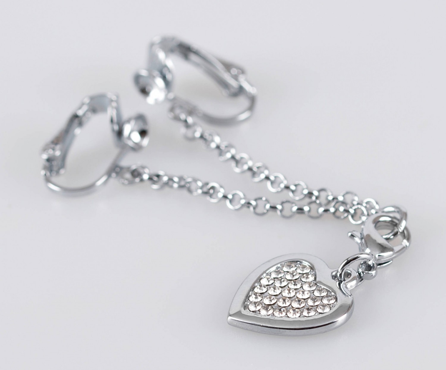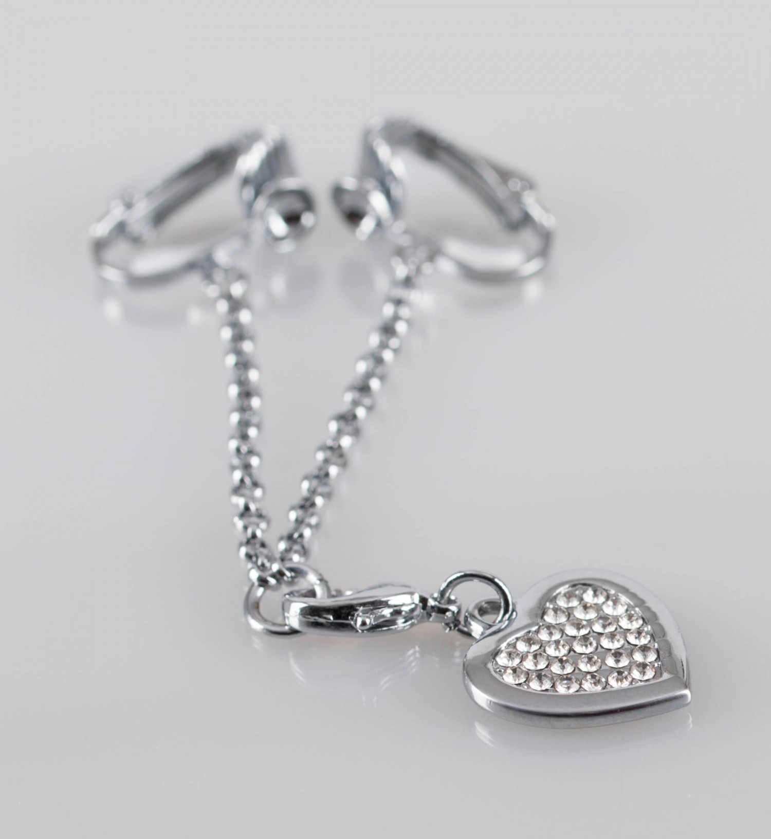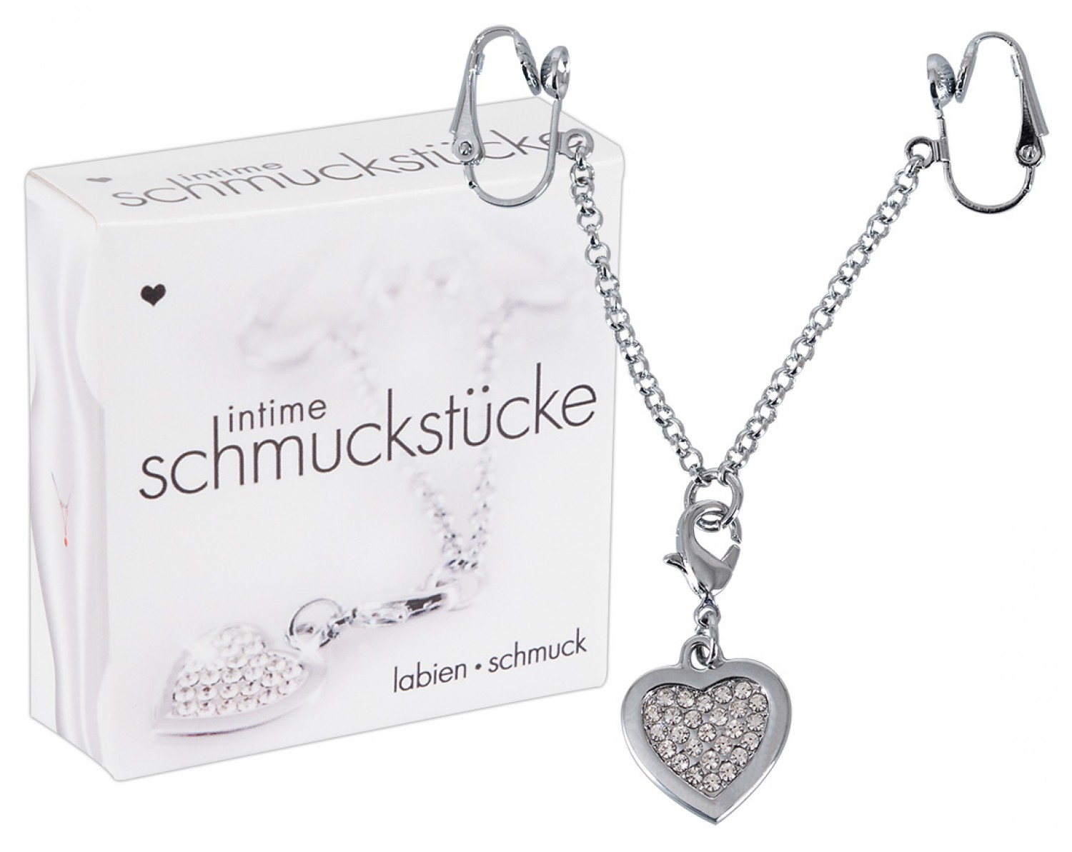 Ez az intim szívalakú medállal ellátott ékszer két kis klipsz segítségével könnyedén a szeméremajkakra csíptethető. A kapcsok gyönyörű lánccal csatlakoznak a kicsi strassz kövekkel dísztett szívecske medálhoz. Az apró fehér kövekkel díszített szívecske a lábad között biztosan felkelti majd a partnered érdeklődését is! Ha pedig szeretnél az izgalmas intim pillanatokra mindig emlékezni, akkor a karabinerrel rögzíthető medált bármikor leszedheted és karkötőn vagy nyakláncon is hordhatod, amíg vissza nem kerül az intim zónádba!