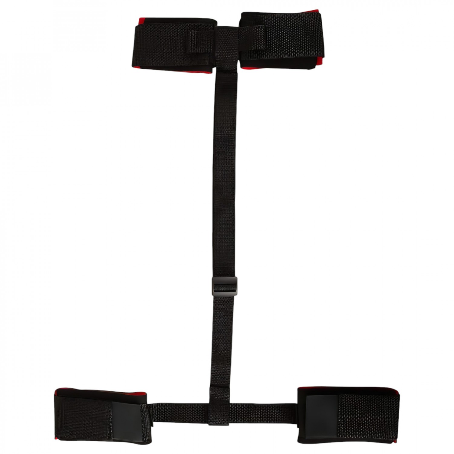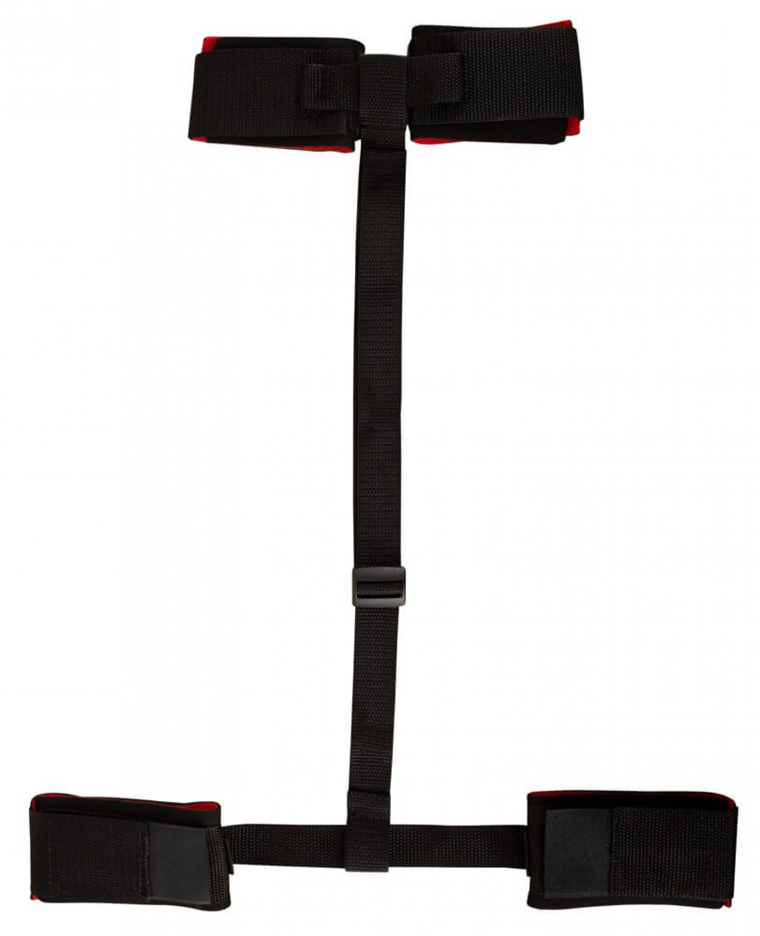 Kiváló minőségű, nagy szakítószilárdságú, enyhén párnázott megkötöző szett. 1pár csuklóbilincs és 1pár bokabilincs összekötve egy kb. 80cm-es pánttal, ami állítható. A bilincsek mérete tépőzárral állítható.